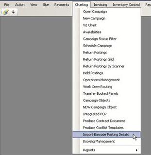 Each Quattro database has been configured to import data from OutdoorAssets.net. In Quattro, go to the Charting menu and choose Import Barcode Posting Details